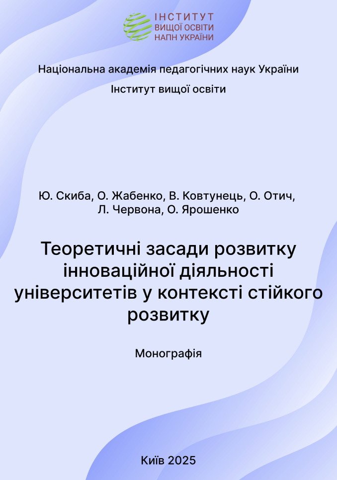 Теоретичні засади розвитку інноваційної діяльності університетів у контексті стійкого розвитку: монографія / за ред. Ю. Скиби, ІВО 2025. 127с.
